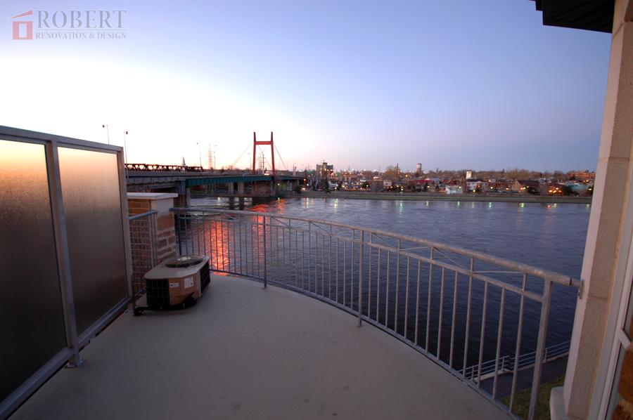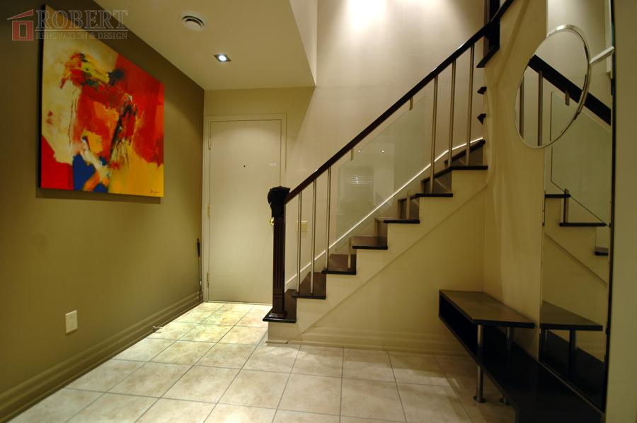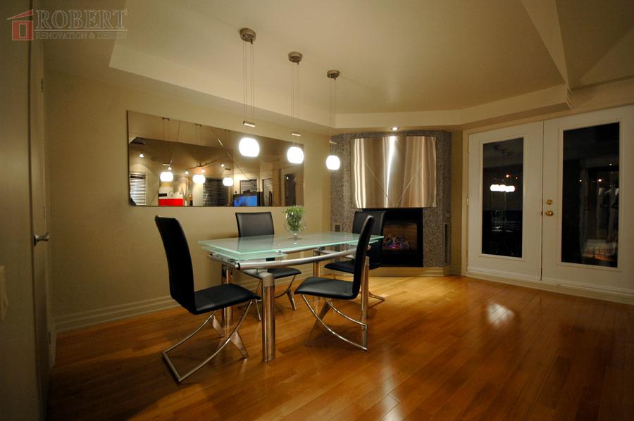 High level of finishing details. To do external corners, no molding or trim strips were used. Tiles were precision cut and aligned to attain seamless appearance of solid lime-stone slab.