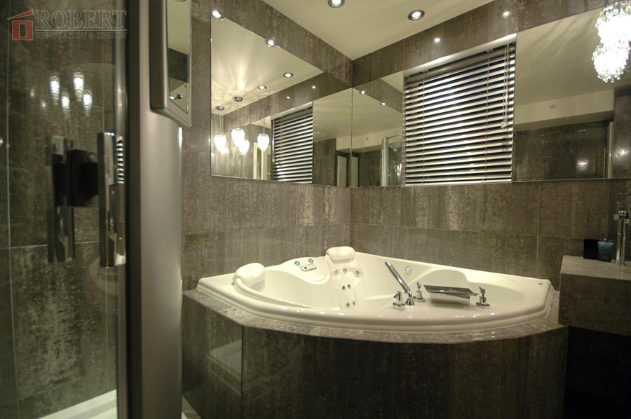 Modern jacuzzi in the bathroom, equipped with massage jets.