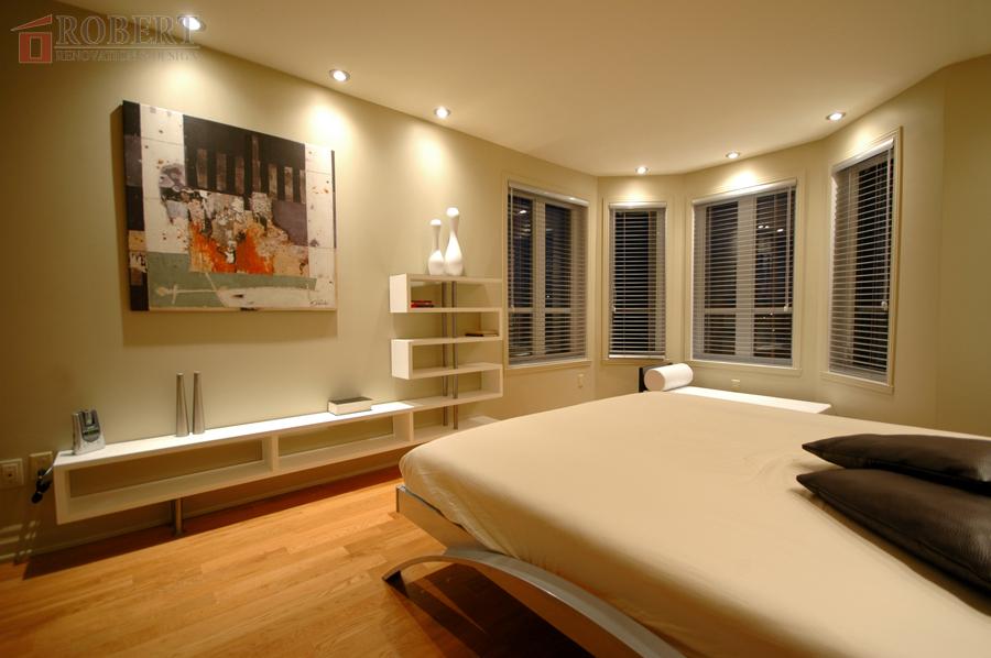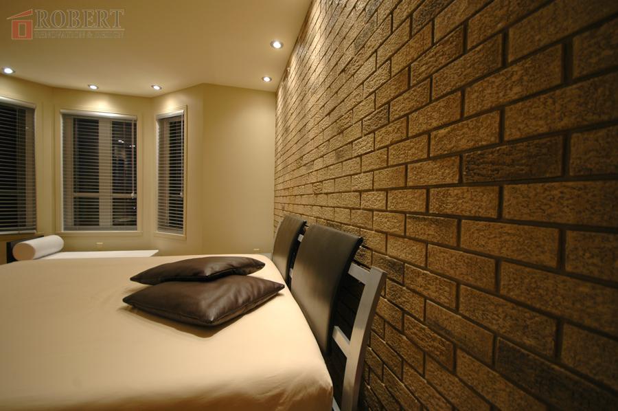 Customized brick wall behind the master bedroom bed, made to perfection.