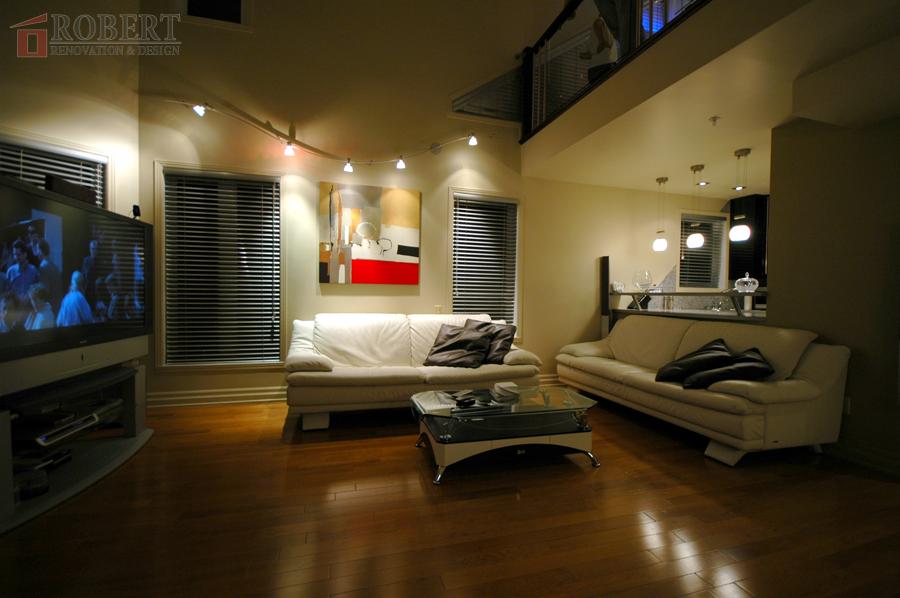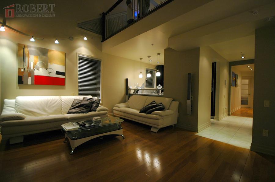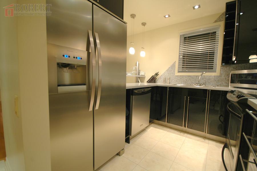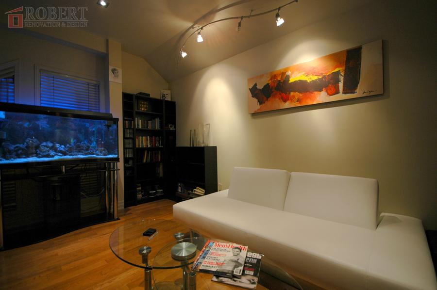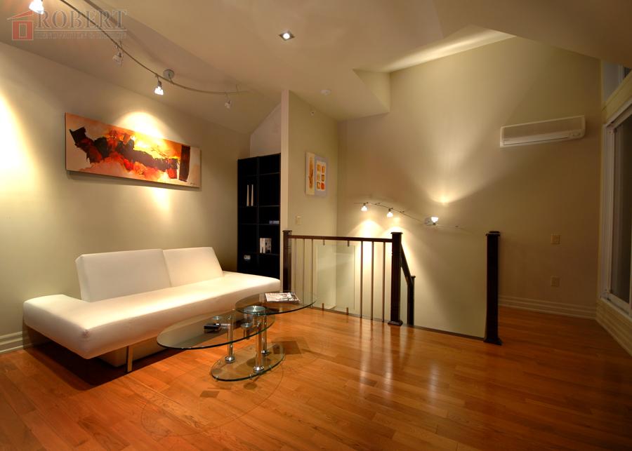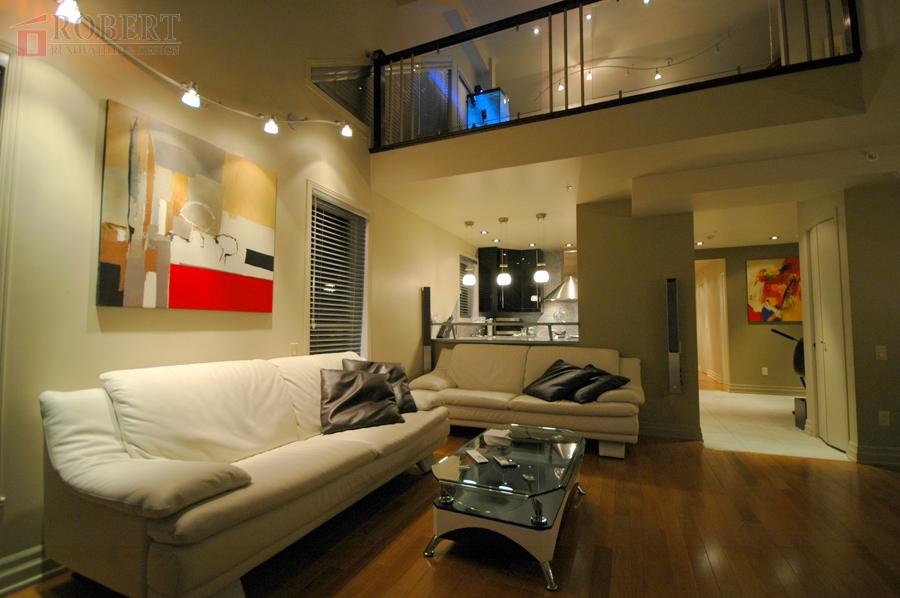 Custom kitchen, lighting setup, shower.